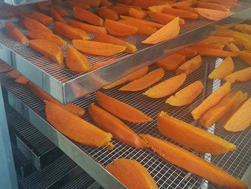 紅薯烘干要準(zhǔn)確掌握好紅薯的干度,可用口嚼時軟而綿,這樣硬度為適宜。如果烘干過干,吃時嚼不爛,影響其品質(zhì),但烘干不到位,水分多,容易生霉腐爛。根據(jù)使用我司小型紅薯干烘干機的客戶反饋的情況,紅薯干的烘干溫度不宜超過55℃,要分階段烘干,中間要讓紅薯干回軟。